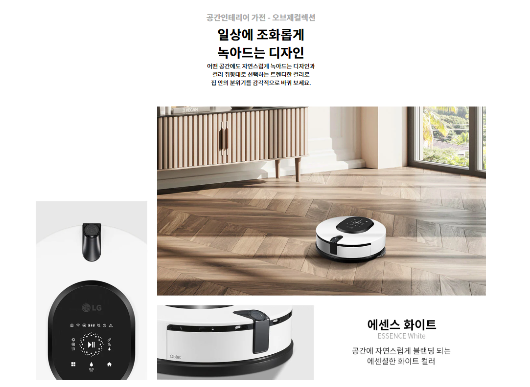 LG 코드제로 오브제컬렉션 M9 로봇청소기는 LG전자가 선보이는 최신 로봇청소기로 고급스러운 디자인과 독창적인 기능으로 깨끗하고 감성적이며 편안한 가정환경을 만들어 줍니다.